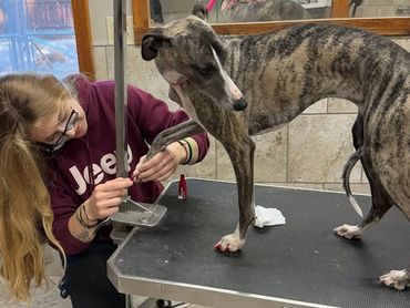 Includes bathing, expression of anal glands, nail trim, ear cleaning and a brush out. Pricing varies depending on the breed of dog and hair coat. Please call for a quote.